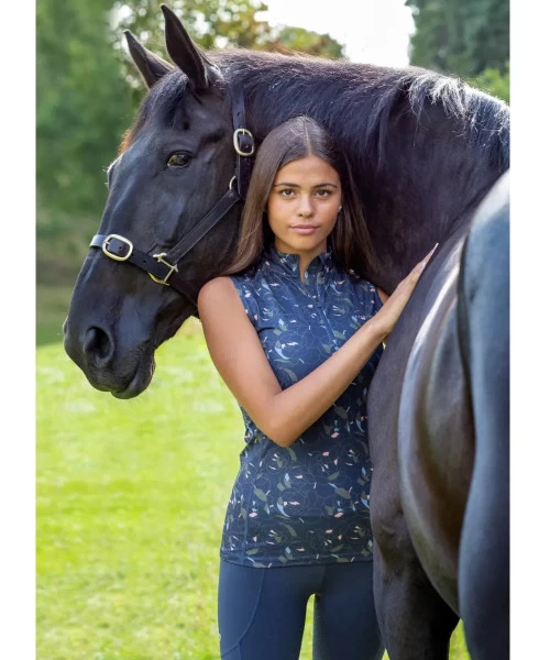 Aubrion Revive Sleeveless Sun Shirt has a beautiful Peony print in shades of navy, olive, light blue, and pink that coordinates perfectly with the Aubrion Sculpt Riding Tights. The fabric is rated UPF50+ and is lightweight, stretchy, and breathable. Technical, comfortable, and great looking, the Aubrion Revive Sleeveless Sun Shirt is ideal for performance and style on the hottest days.