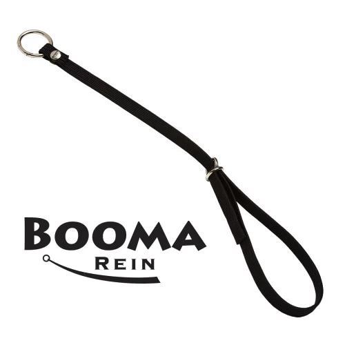BOOMA Rein Safety Rein is a flexible rein keeper that easily attaches your reins to your western saddle, preventing the rider from losing the reins. Like a boomerang, your reins will return to you! This simple and clever device attaches either directly to the reins for more rigorous riding or with the included caribiner o-ring for recreational riding. BOOMA Rein is adjustable so it will accommodate any horse and rider. The polypropylene material is durable and waterproof and can be used for competitions, trail riding, and everyday riding and training. The BOOMA Rein adds an extra bit of safety and security for any rider. Riders don’t need to worry about dropping the reins or having them pulled away. No need to worry about the loose reins getting stepped on or tangled, either. With BOOMA Rein, the rider maintains control and confidence. BOOMA Rein’s flexible construction means the horse can still lower its head to eat or drink. Click the Product Videos tab for more!