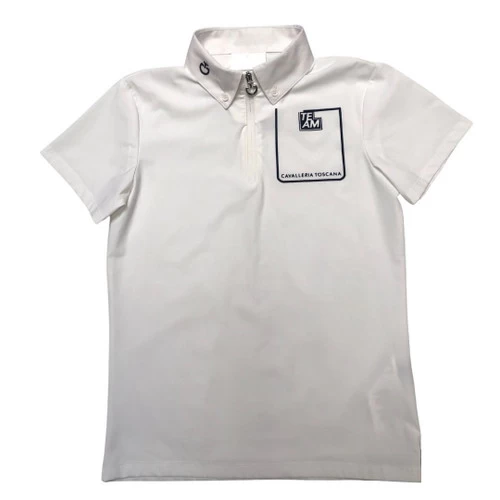 Cavalleria Toscana Boys Team Daytona Zip Polo with button down collar is a competition shirt that’s perfect for jumping shows and clinics. The lightweight short sleeve polo shirt has a self-sealing quarter zip with CT logo pull. With technical stretch jersey fabric, white cotton poplin collar, and Team Cavalleria Toscana graphic, the Team Dayton Zip Polo for kids is the perfect mix of classic and sporty style.