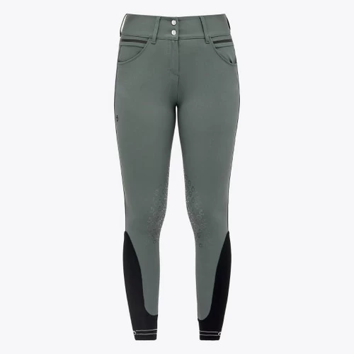 Cavalleria Toscana Silicone Logo Breeches in knee grip style are a riding wardrobe necessity with technical function and classic CT style. Ladies breeches have a high waist and contoured wide waistband that’s designed for flattery and riding comfort. Ergonomic seams and stretch socks ensure an outstanding fit.