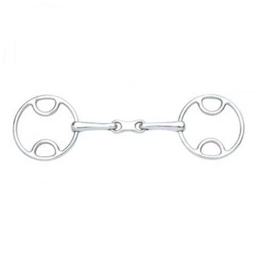 Centaur French Link Mouth Loop Ring Loose Ring Gag Bit is an English snaffle bit with loose ring cheeks. Stainless steel construction has a lifetime guarantee against rust. Loose rings have separate sections for attaching bridle and reins. French link mouthpiece. Bit is available in size 5, 5.25, 5.5, and 5.75.