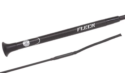 The ease of access and use makes it an excellent whip for sensitive horses and fosters a quieter, prettier ride. Dressage whip in USEF and FEI legal 100 cm and 110 cm lengths is perfect as your dressage schooling whip or show whip. Whip in 100 cm length can be used for FEI Pony tests. Fleck dressage whip has a carbon composite shaft and plastic end cap. Total whip length, including the lash, measures 100 cm or 110 cm.