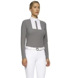 Cavalleria Toscana Pleated Competition Shirt for Girls is made with luxury technical fabric that is lightweight, stretchy, and has an elegant feel. The material is moisture wicking, quick drying, and odor controlling. Girls Cavalleria Toscana equestrian show shirt has a slim fit, classic white collar, and white cuffs. Lovely and refined CT Pleated Competition Shirt has a crisp, professional look that’s perfect for young riders who also appreciate riding comfort.