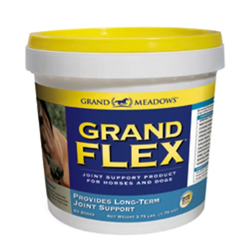 Grand Flex by Grand Meadows is an effective anti-inflammatory horse supplement to provide support for joints and soft tissues. Grand Flex joint supplement for horses is designed to keep your horse’s joints fit and sound using crucial ingredients such as Glucosamine HCL, Vitamin C and Methionine. This highly rated and often recommended product is also formulated to benefit the tendons and ligaments, which are also important to a long healthy career. Grand Flex is suitable for competition horses, senior horses, and even dogs! Great product at a great price – Grand Meadows! Order today and join the thousands of other riders who’ve been impressed by the efficacy of Grand Flex over the years.
