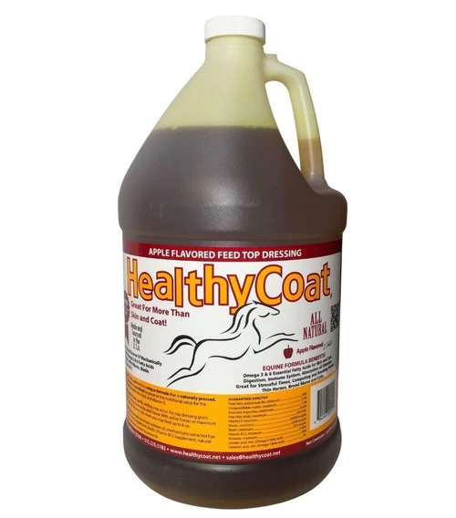 HealthyCoat Feed Top Dressing in delicious apple flavor is a multi-purpose horse supplement that offers benefits for more than just skin and coat. The Omega 3 and 6 Fatty Acids, vitamins, and minerals help support digestion, the immune system, and vitamin absorption. HealthyCoat has all the ingredients needed to make your horse’s coat shine!