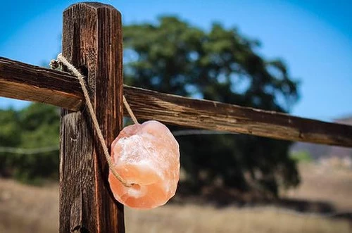 Himalayan Rock Salt on a Rope features 100% pure Himalayan salt in solid rock form. This economical and delicious salt rock is the easy way to get your horse, mule, or goat to ingest necessary salt and minerals to replace what is sweated out and to encourage the animal to drink more. Not only is the Himalayan rock salt nutritious and economical, it’s pretty to look at, too, in beautiful shades of pink and cream.