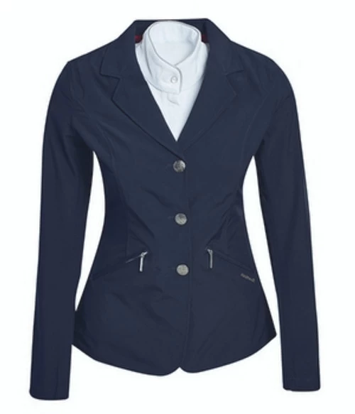Horseware Competition Jacket in gorgeous Hydro blue! Ladies softshell competition show jacket is lightweight and breathable for total riding comfort. This stretch jacket from Horseware Ireland is highly water-resistant and stain-resistant to stay looking sharp round after round. Women’s riding jacket has that close-fitting, athletic look you want with a carefully engineered construction for maximum movement and flattering drape.
