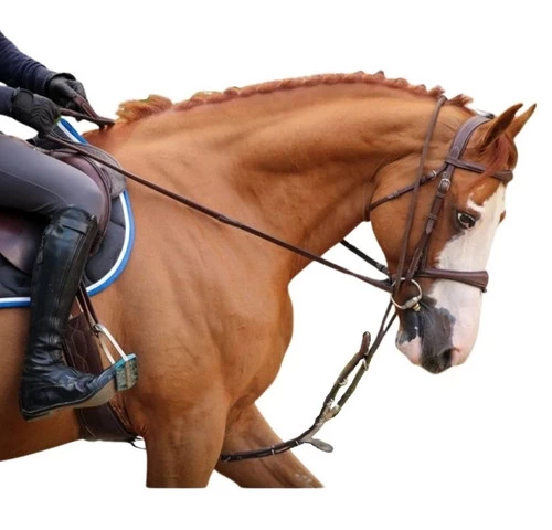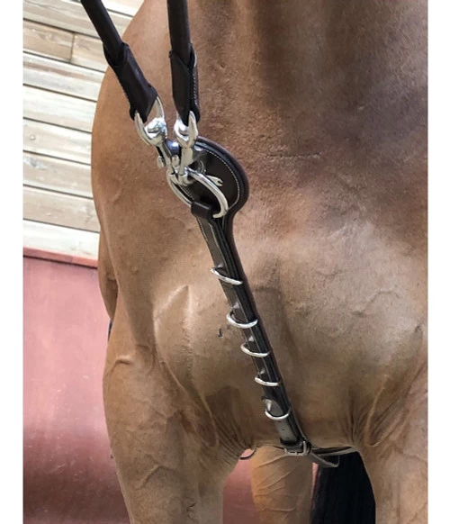 The Jump’in Patrick Training Aid for horses can be used for lunging or riding to reinforce proper stretching and muscle development. The leather attachment system will fit both standard and wide bridle crown pieces. There are plenty of adjustments to get the correct fit. The Patrick Training Aid works very well for young horses and as a refresher or retraining older horses. It is gentle enough for use by less experienced riders, with supervision.