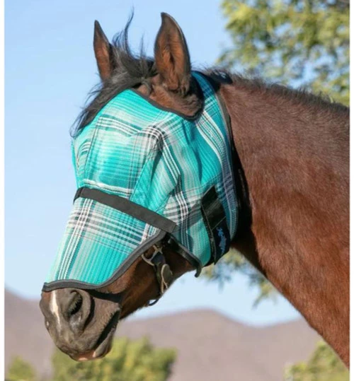 The Kensington Fly Mask with open forelock and removable nose has durable web trim. It’s made with Textilene mesh that resists tears, mildew, and even fire. It offers 73% UV protection. This equine fly mask has the Kensington Original Double Locking System so it stays on until you take it off.gives your horse extra summertime protection from pesky insects and damaging sun rays. This Protective Fly Mask has an updated design with opening for both ears and forelock. The extra nose piece attaches securely to provide extended coverage from insects and sun.