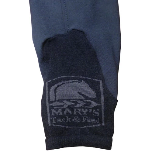 The Mary’s Signature Breeches are found only at Mary’s Tack & Feed! Our exclusive Mary’s Signature Breech is a women’s euroseat knee patch riding breech with flexible silicone grip knees. The low-mid rise waist flatters many figure types and the wide waistband is comfortable and perfect for all your favorite wide riding belts. Ladies knee grip English breeches are a performance stretch fabric that is lightweight, breathable, moisture wicking, and quick drying. The Mary’s Signature Breech has a stretch sock at the ankle with the Mary’s Tack & Feed logo knitted right in. So cute! The back waistband has a wide center belt loop with tonal Mary’s Tack & Feed logo embroidery.
