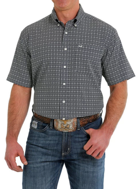 Men’s Cinch ArenaFlex Short Sleeve Shirt in navy print is super lightweight but tough and designed for the rigors of summer horse riding and competition. Performance fabric wicks away sweat, dries quickly, and has UV protection. The classic button down styling and crisp print are always in style.