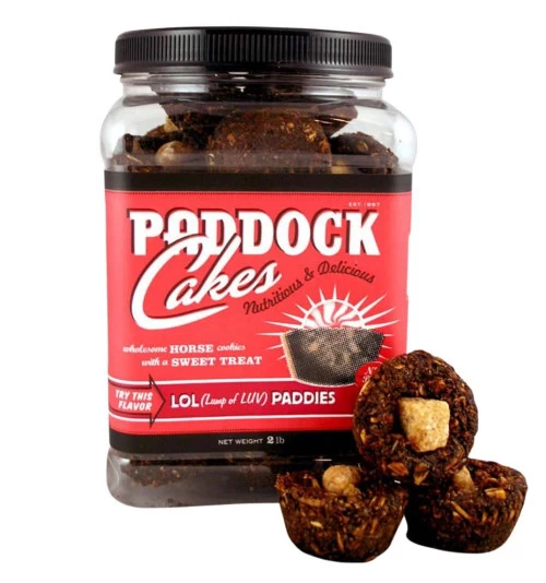 One bite of these sweet chewy treats with that extra touch of peppermint, brown sugar, or gummy frog candy and we’re pretty sure your horse will be hooked! Paddock Cakes combines rolled oats, apples, cane molasses, wheat bran, cracked corn, rolled barley and flax seed to make these handmade horse treats. Each one is then topped with a delectable candy that makes them even cuter and tastier! Your horse will be delighted with the Prince Frog Paddies, Peppermint Paddies, or LOL (Lumps of Love) Brown Sugar Paddies!