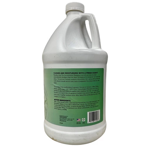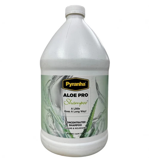 Aloe Pro Shampoo from Pyranha is formulated with Aloe Leaf Juice and Vitamins A, D, and E to nourish and moisturize skin and coat. Mix 1-2 ounces of the concentrated horse shampoo with one gallon of water. Aloe Pro Shampoo works effectively on dirt, oil, dust, and grass while being gentle on scrapes, cuts, and irritated skin. The result is a clean horse with a shiny coat that has a light, fresh scent. Nice! Pyranha Aloe Pro Shampoo is even safe for use on cattle, llamas, sheep, goats dogs, cats, and ferrets.