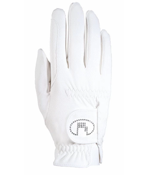 Roeckl Lisboa Gloves have a tasteful crystal emblem on the closure tab for sophisticated glamour. Roeckl riding gloves are touchscreen compatible and can be machine washed to maintain cleanliness. In White, Black, Mocha, Navy, and Anthracite. The Mocha glove has amber colored crystals. The other gloves have clear crystals.