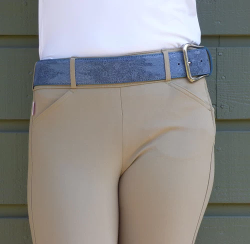 The performance fabric on the Trophy Side Zip is a light weight cotton microfiber blend that breathes and wicks moisture so you stay comfortable and ready to compete. Ladies riding breeches from Tailored Sportsman are made in USA. Available in Tan, White, and occasionally in TS seasonal colors.