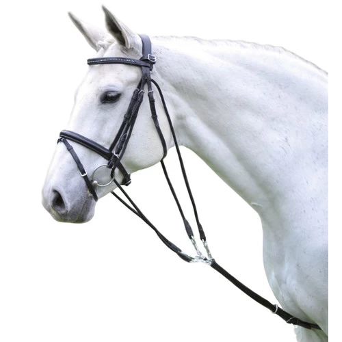 Waldhausen Gogue is a leather gogue, used to lower the horse’s head carriage. This training tack can be adjusted to fit most horses and is used to bring the nose in and flex the poll. Training gogue from Waldhausen consists of: Neckpiece, Underpart, 2 Ropes. Can be used with or without gogue reins (not included). Black. One size.